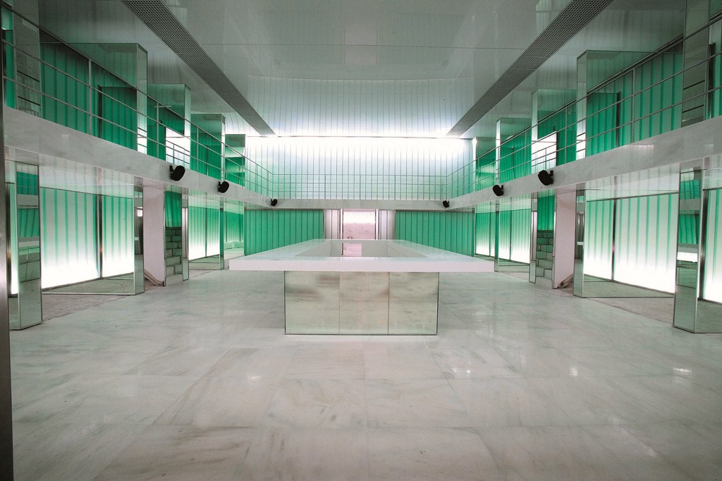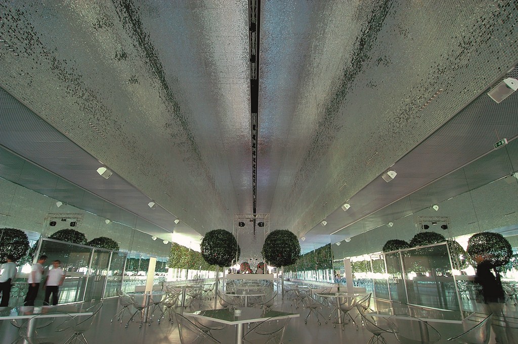 Белый цвет также позволяет насладиться многокрасочным освещением, установленным повсюду, начиная от джакузи в каждом отдельном номере, и заканчивая огромным внутренним двором – атриумом. Яркие, сочные цвета выразительно раскрываются на белом фоне, что помогает хозяевам номера каждый раз выбирать и создавать определенное настроение интерьера. Ночью, благодаря такой подсветке номеров, со стороны создается иллюзия, что отель сложен из многообразия разноцветных кубиков. Впечатляюще смотрится и атриум – мозаика из 180 миллионов маленьких зеркал усиливает эффект освещения и создает непередаваемую игру цвета.