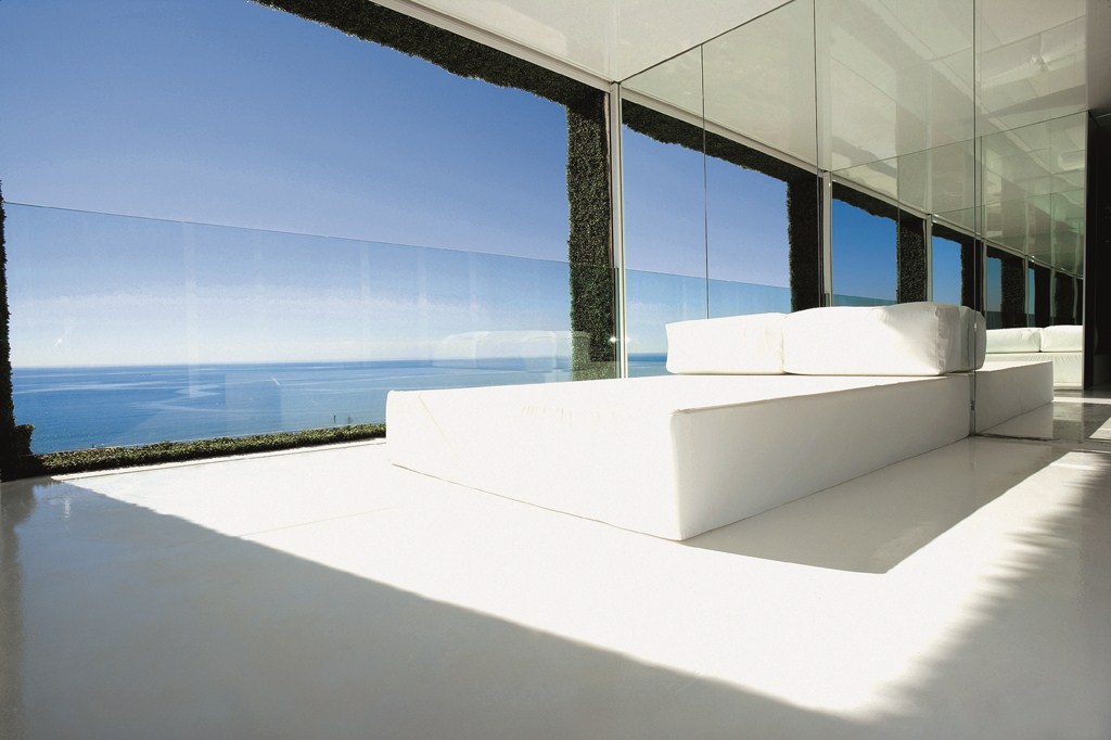 Аскетичность белого цвета еще сильнее подчеркивается простотой форм. Главный символ отеля – квадратное яблоко – условно повторяется множество раз во всем интерьере. Прямые углы кроватей, гладкие поверхности, четкие контуры, квадратные пространства балконов и номеров… Нет никаких драпировок, занавесок, ковров или покрывал – все на виду, оголено, как в настоящем первобытном раю, и ни одна мягкая линия не прикрывает бесстыдной кубической наготы. Сексуальность этого места лишена обычной альковно-кружевной романтики – она открытая и прямая, отчего немного шокирует поначалу (как кресло «Кама-сутра», которое стоит в каждом номере, и четко дает понять, зачем же сюда приезжают).