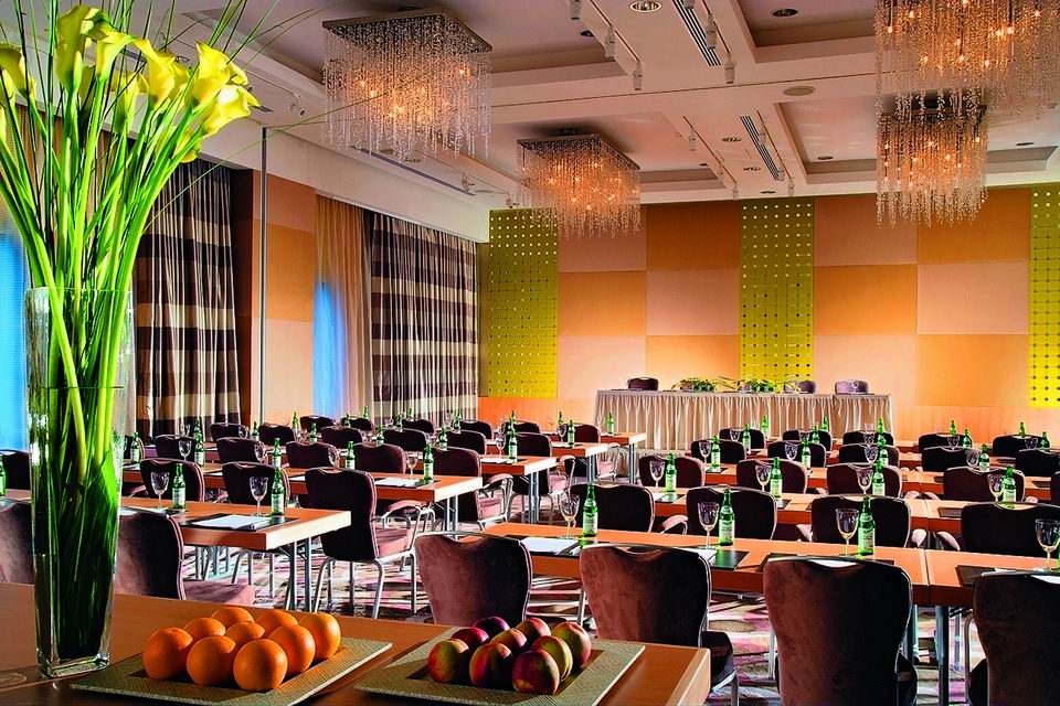 К архитектурным достоинствам отеля относится и уникальный панорамный бар, расположенный на 34-ом этаже. Всего в гостинице шесть баров и ресторанов.
