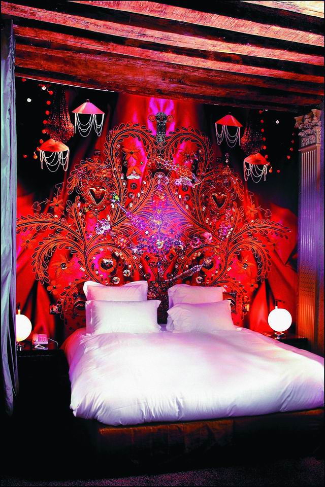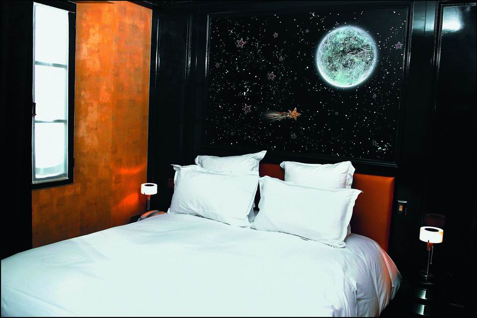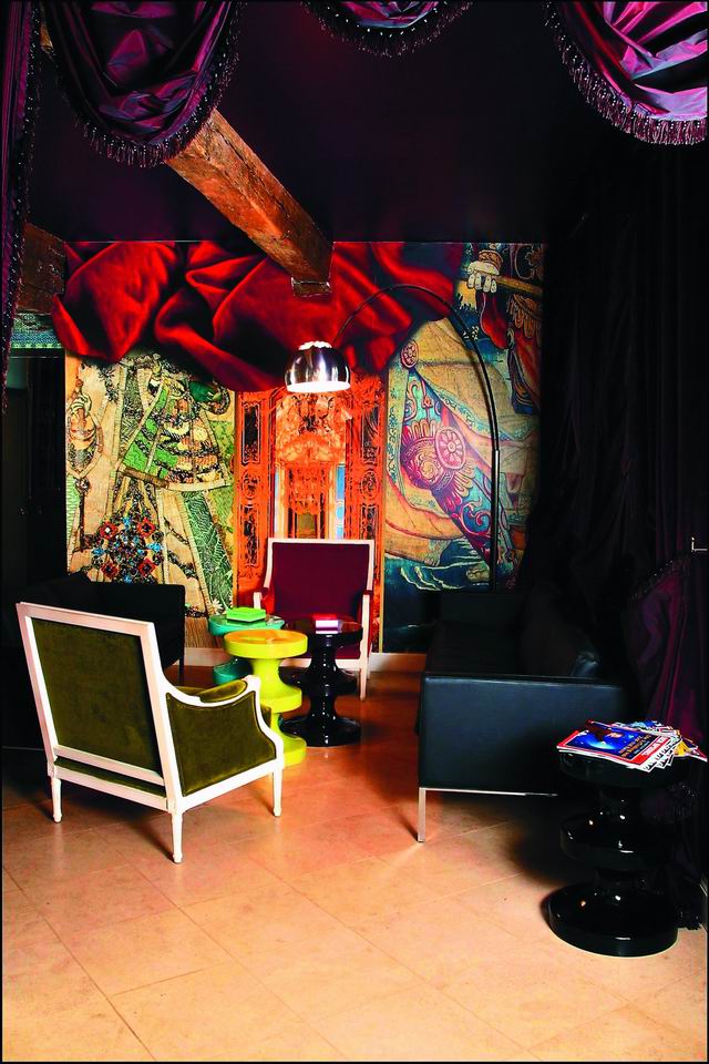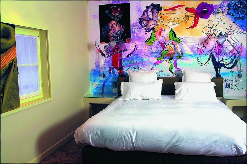 По словам главного дизайнера Кристиана Лакруа: "Оригинальность интерьера в каждом номере отеля составляют коллажные фрески". Таким образом, именно оригинальность оформления стен и потолка становится центральным, ведущим моментом интерьера, приковывающим взгляд и создающим индивидуальность комнаты.