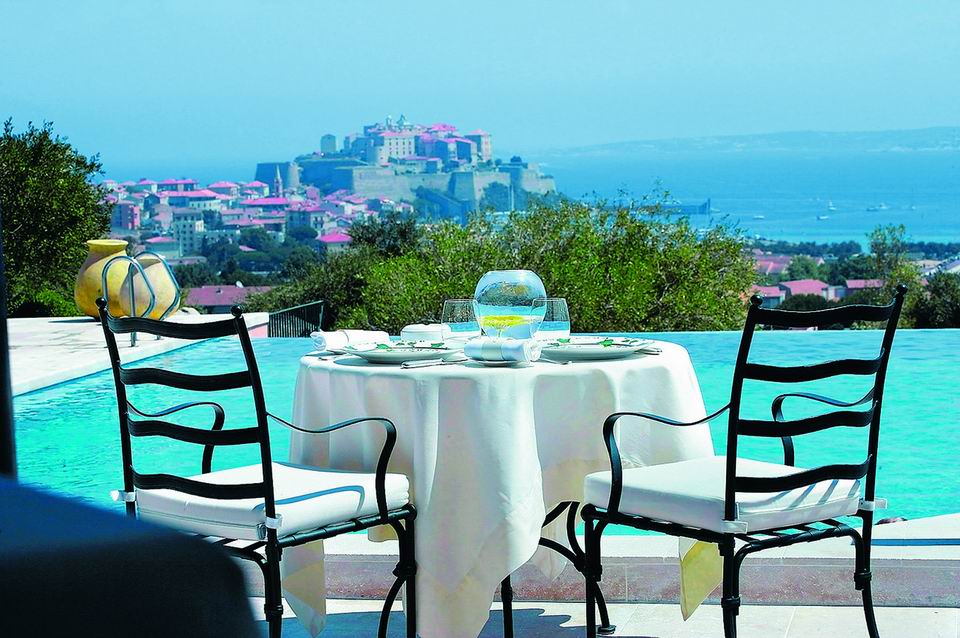"Королевский этап путешествия по Корсике напротив цитадели и моря. Гостиница? Нет, скорее воспевание средиземноморского величия".