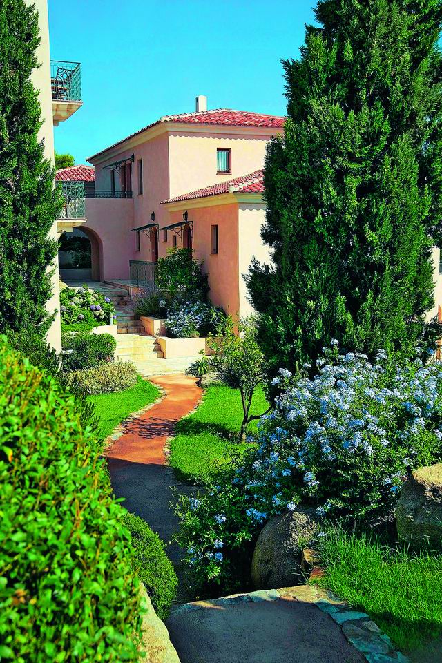 Средиземноморская архитектура избегает излишнего украшательства, её корни можно найти в постройках окружающих деревень Северной Италии. В центре поместья стоит само здание гостиницы с салонами, баром, рестораном с большими дегустационными возможностями, гимнастическим залом для занятий спортом, анфиладой из 26 номеров, а также конференц-залом. А вокруг разбросаны небольшие виллы с уютными номерами с террасами, на которых так приятно завтракать в тёплой семейной обстановке. Одна из этих вилл площадью 350 кв. м рассчитана на 6-8 человек.